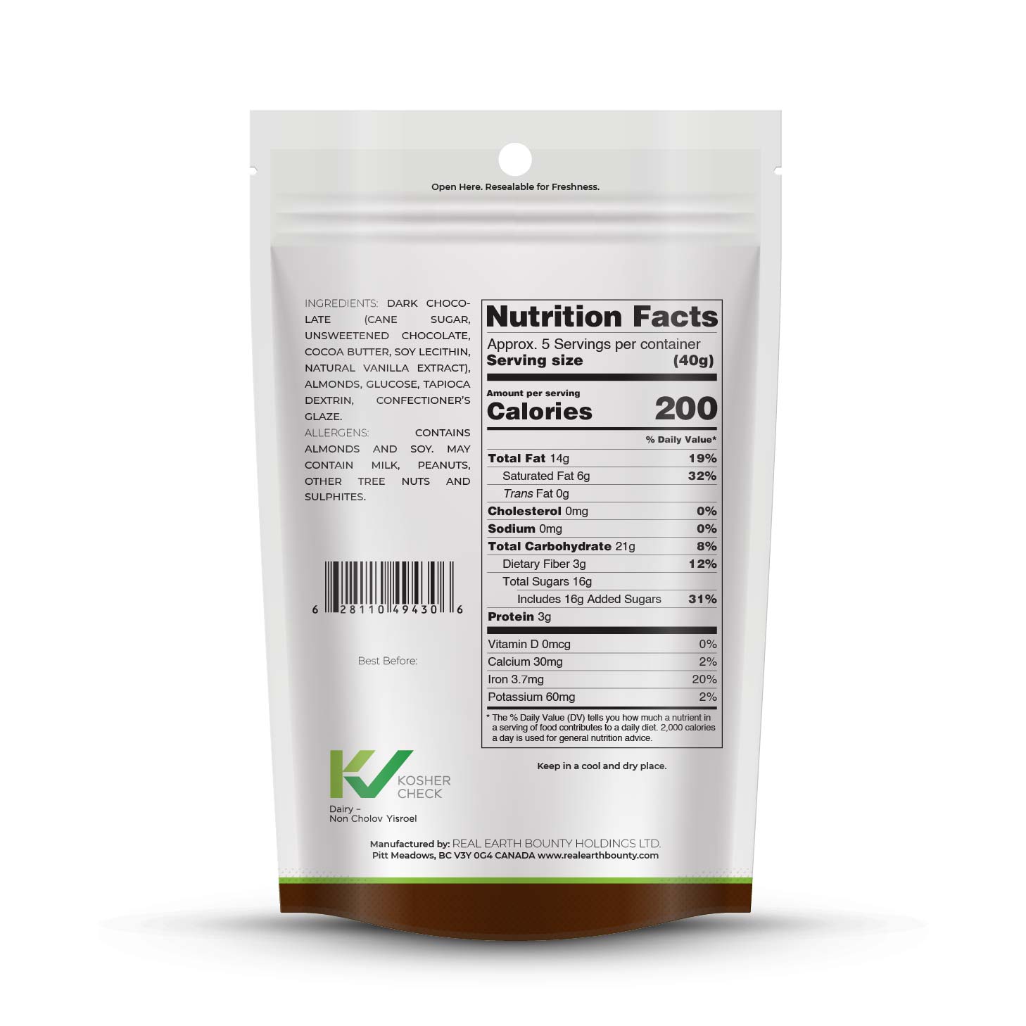 | Content | DARK CHOCOLATE ALMONDS Weight: 3oz, 5oz, and 7oz | DARK CHOCOLATE CRANBERRIES Weight: 3oz, 5oz, and 7oz | DARK CHOCOLATE HEMP SEEDS Weight: 3oz, 5oz, and 7oz | DARK CHOCOLATE BLUEBERRIES English and French Weight: 3oz, 5oz, and 7oz | DARK CHOCOLATE GINGER Weight: 3oz, 5oz, and 7oz | DARK CHOCOLATE ESPRESSO BEANS Weight: 3oz, 5oz, and 7oz |